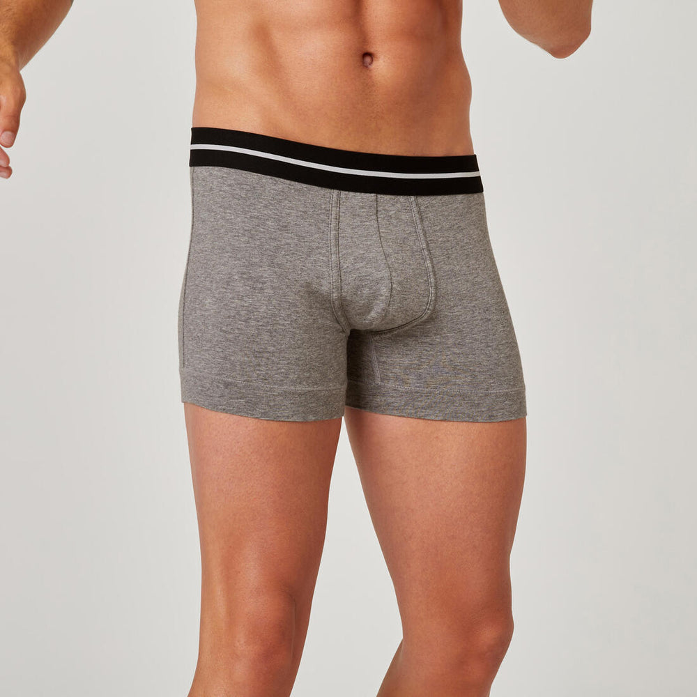Avec son tissu en coton majoritaire (65 %) et ses coutures plaquées, ce boxer est synonyme de confort. Et ce n'est pas tout : en plus de sa ceinture extensible qui se fait complètement oublier, il ne roule pas sur la cuisse grâce à sa bande rapportée : fini la sensation d'oppression ! Ensuite, parce que nous avons voulu ce boxer à la fois sportif et quotidien, nous avons doublé sa poche avant pour vous offrir un bon maintien et une grande liberté de mouvement. Alors, prêt à l'enfiler ?