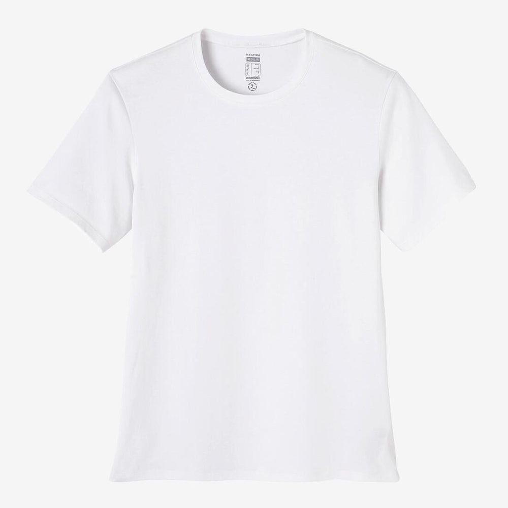 Pas besoin d'être un spécialiste de la mode : pour élaborer une tenue qui fonctionne, notre t-shirt en coton marche à tous les coups. Pourquoi ? Ses manches courtes sont idéales quand il fait chaud ; et quand il fait froid, il vous suffit d'ajouter une seconde couche. Son col rond sait mettre votre cou en valeur comme personne, et sa coupe droite est synonyme de confort. Enfin, le coton (63 %) favorise la ventilation et donc l'évacuation de la transpiration.