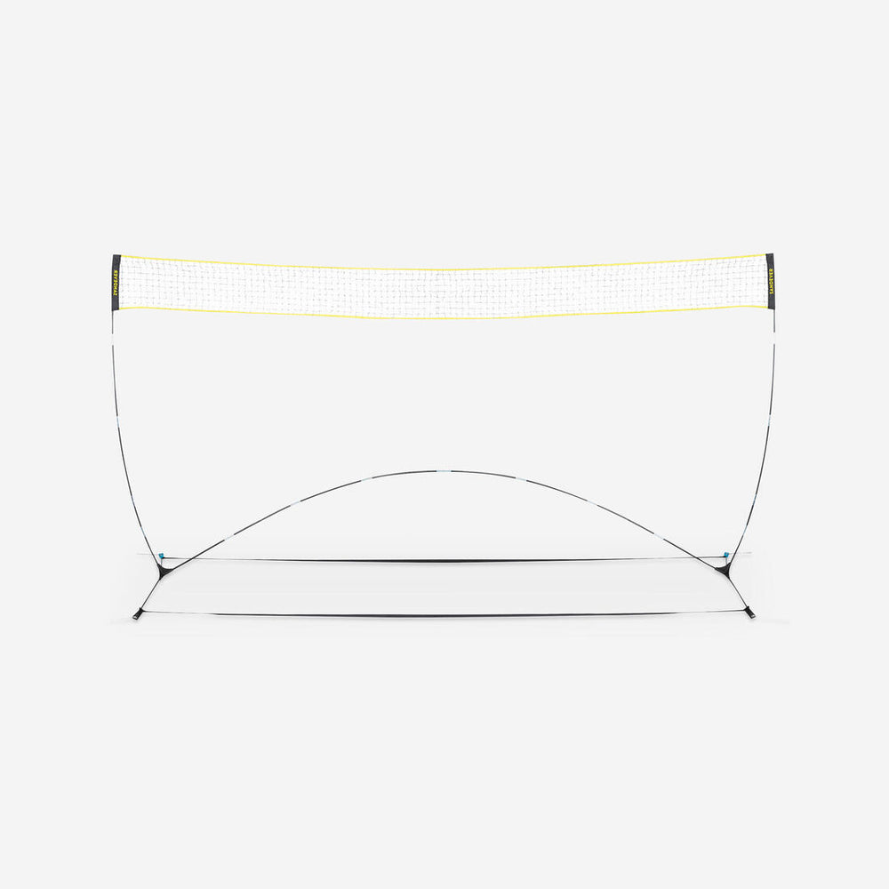 Ce set contient : - Deux poteaux (arceaux en fibre de verre) - Une base autoportante (arceaux en fibre de verre) - 2 sangles de maintien - Un filet de 4 mètres de large. - 4 sardines pour l'ancrage au sol. - 1 sac de transport Poids de l'ensemble : 2 kg