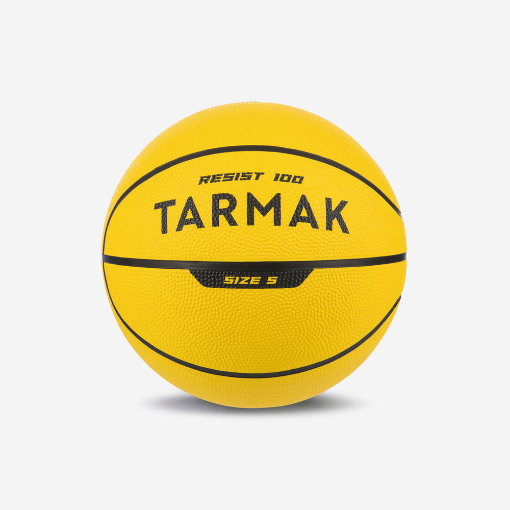 Ballon de basket r100 de taille 5 jaune jusqu'à 10 ans pour débuter.