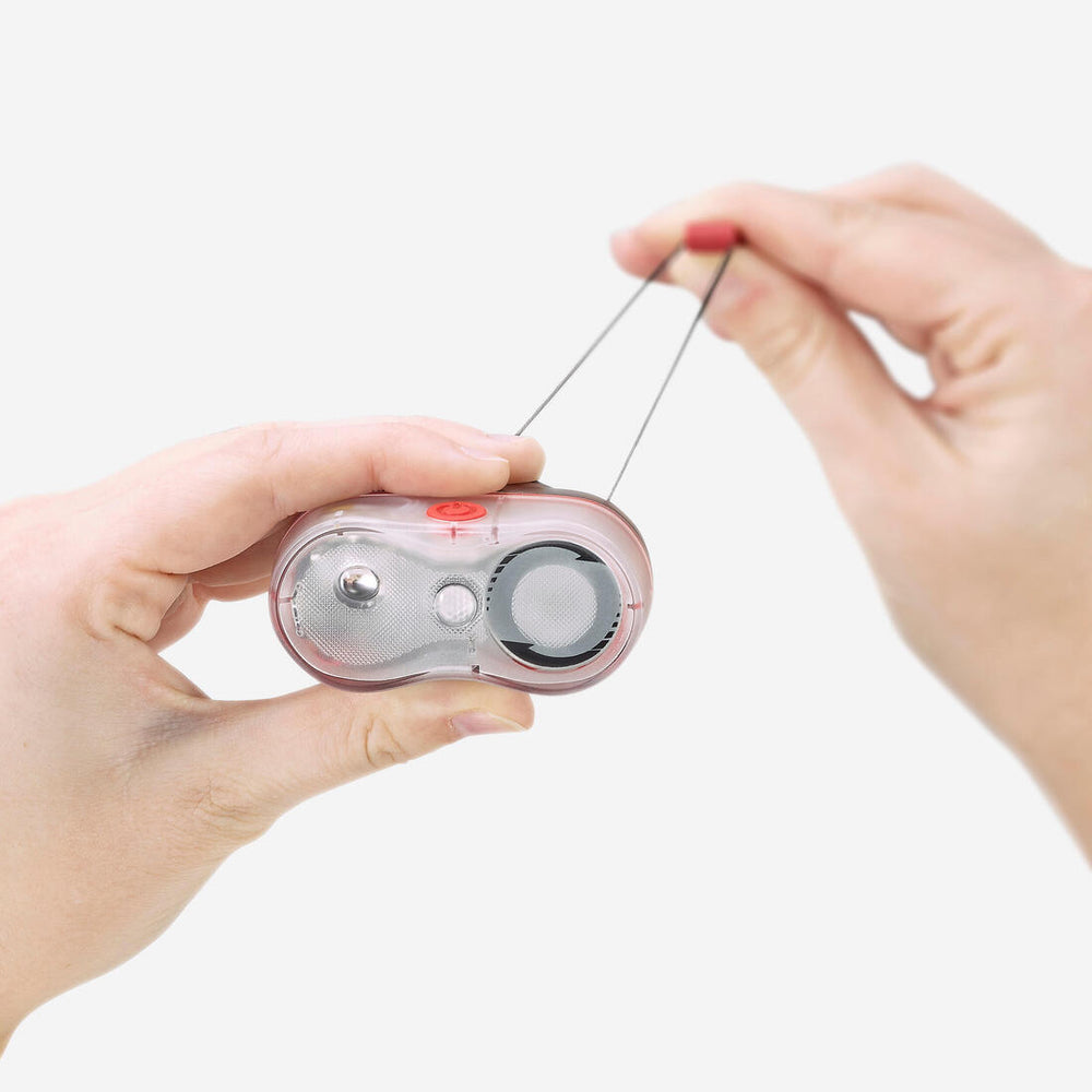 Finies les manivelles ! Cette lampe frontale utilise un ingénieux système de traction permettant de recharger la lampe puis de la placer sur la tête !