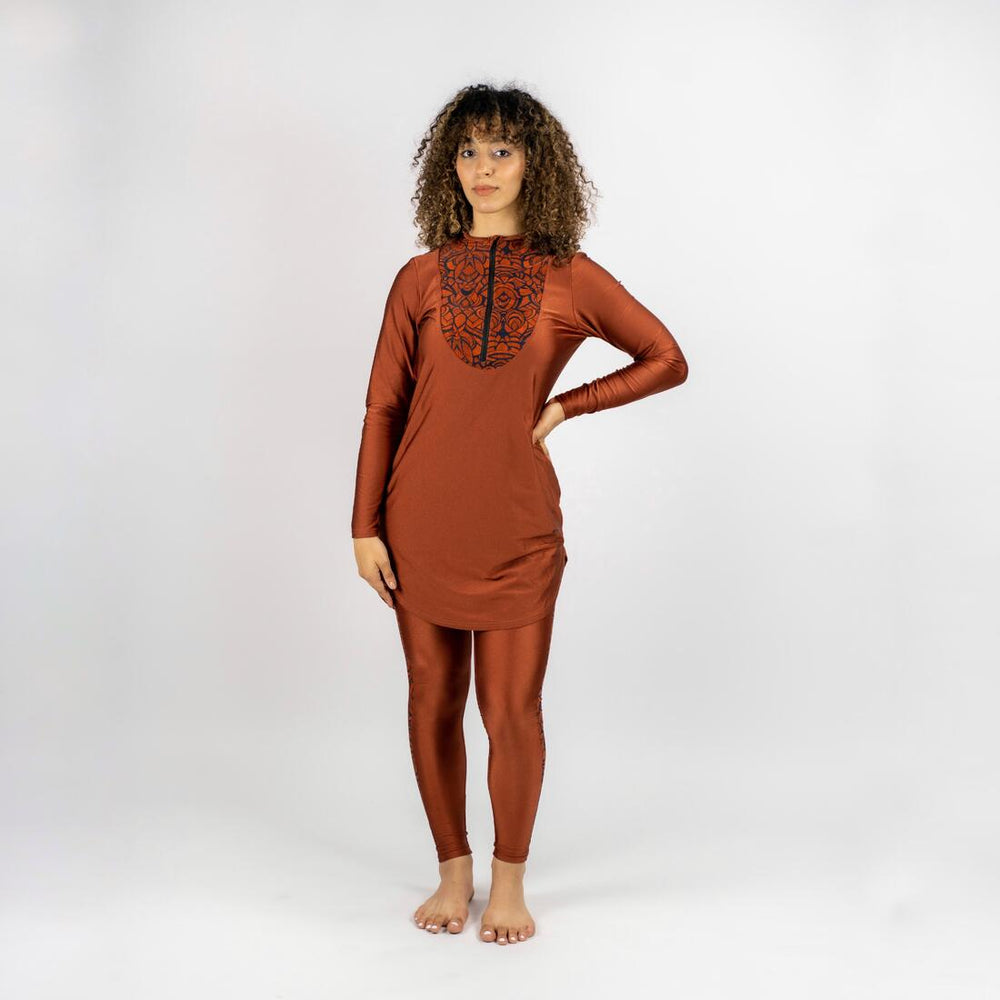 Nos équipes de conception ont développé ce maillot de bain couvrant, burkini, de 2 pièces pour la nageuse débutante