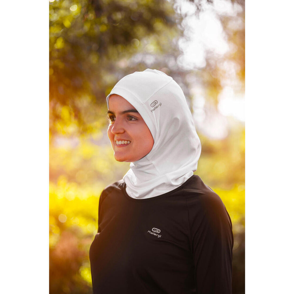 Hijab de running conçu pour la coureuse qui souhaite se couvrir la tête et le cou pendant sa course.