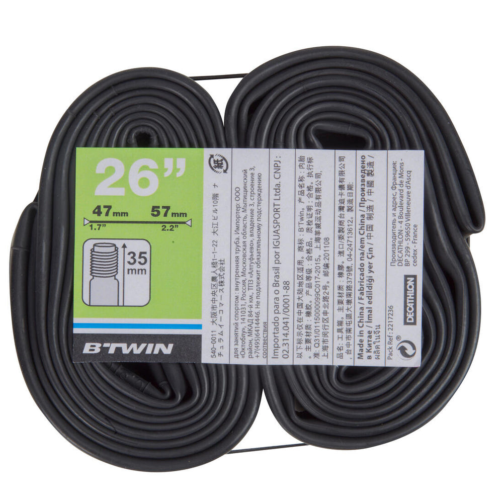 Ce lot de chambres à air conviendra pour votre pneu de diamètre 26" pouces, de section 1,70 à 2,20 avec valve Schrader 35 mm.