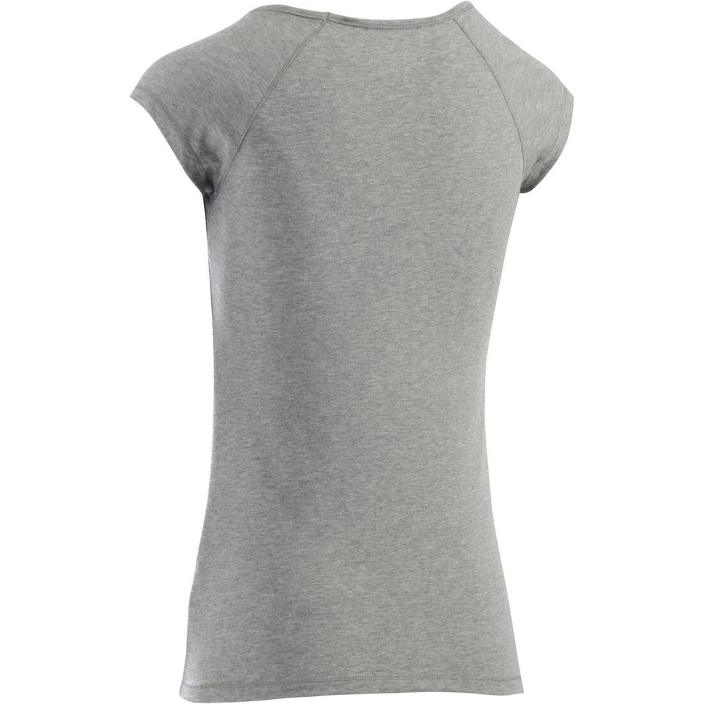 T-Shirt 500 slim Pilates Gym douce femme gris chiné