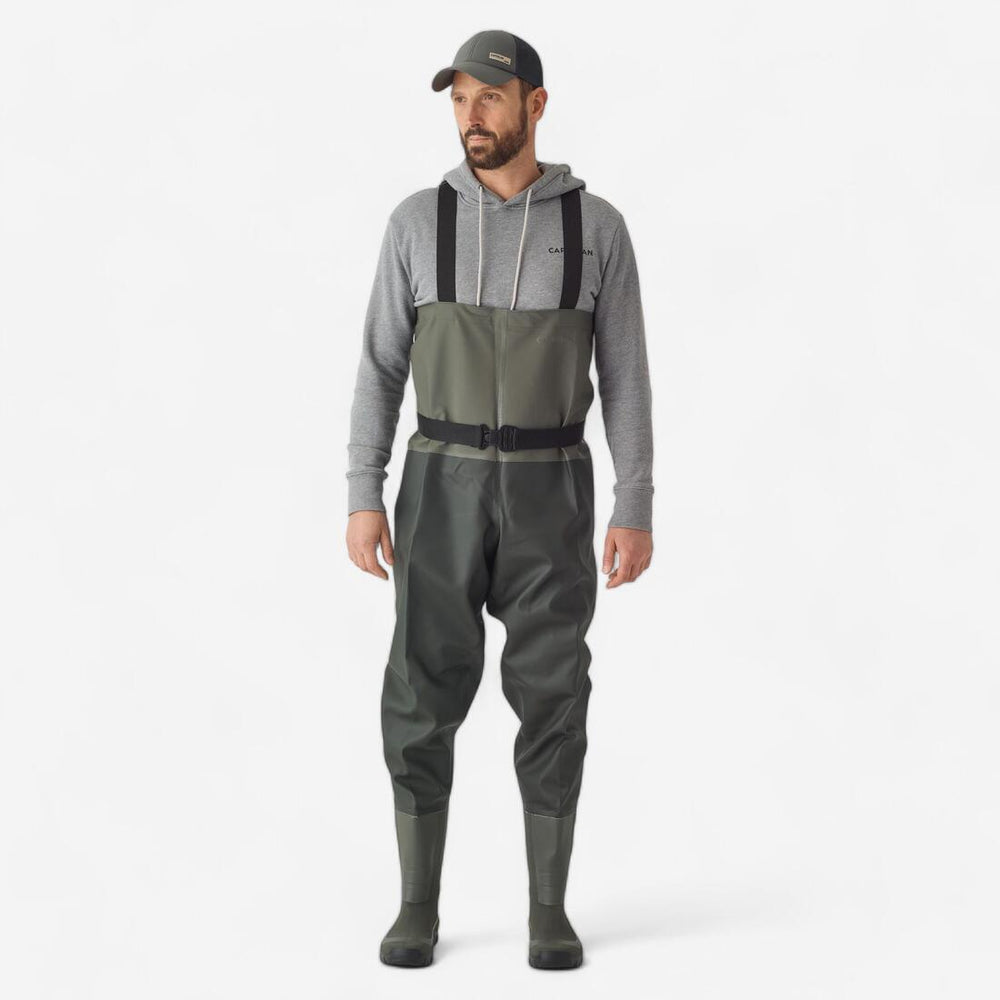 Bottes et semelles injectées en PVC convenant à l'usage float tube Pour un confort optimal, nous vous recommandons de toujours porter vos waders avec un pantalon et des chaussettes hautes. Cela vous apportera plus de bien-être dans les bottes, réduira les risques d'irritation et évitera le contact direct avec les matériaux, limitant ainsi la transpiration pour une meilleure hygiène.